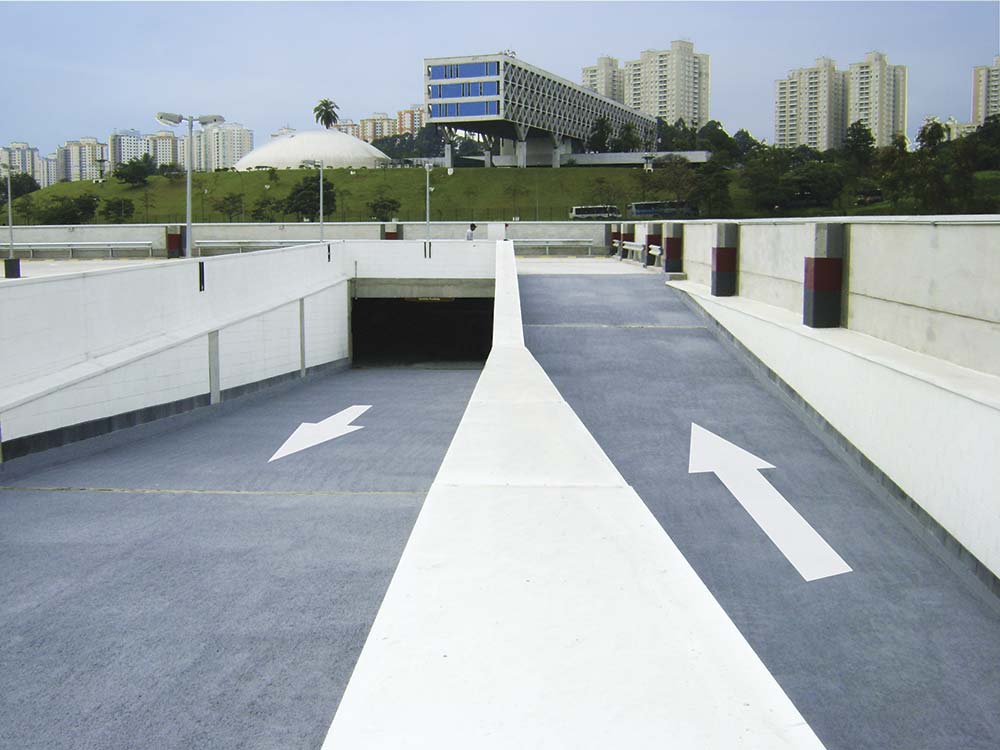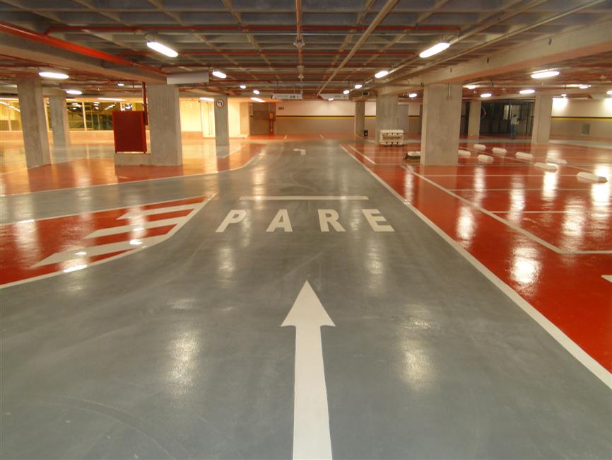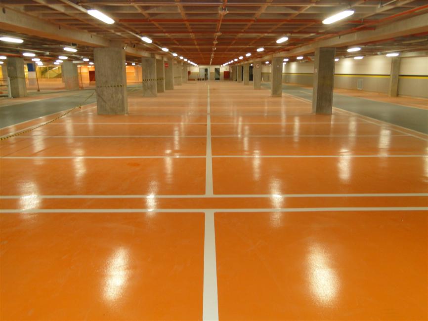 Revestimento aplicado em camadas sucessivas de resina epóxi, de acordo com a especificação de resistência necessária, recebendo uma pintura na cor desejada como acabamento.