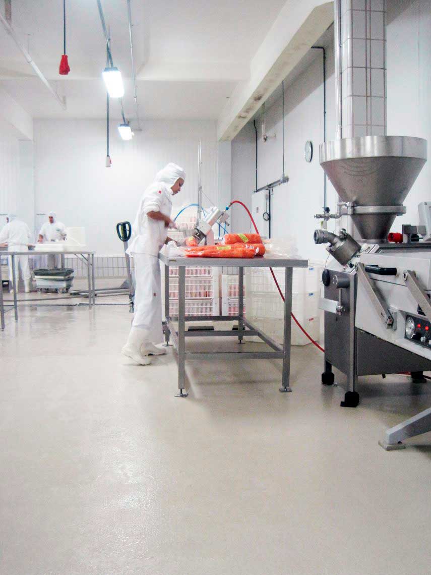 Neste sistema, juntamos toda a resistência química e mecânica do autonivelante ao fator antiderrapante, tão importante para a segurança operacional do dia a dia em áreas industriais alimentícias, excepcionalmente com o contato diário de sangue, gordura, xaropes e açúcares. O sistema é formado por cargas antiderrapantes aspergidas ao acabamento. Aplicado de 4 mm à 6 mm, alia a resistência e cura rápida dos sistemas em uretano a um acabamento antiderrapante e de estética diferenciada.